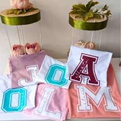 Camiseta algodón inicial universitaria con nombre tipo caligrafía
