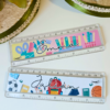 Regla escolar de 15 cm. personalizada de 2 caras, por una lleva el nombre, por otra la frese motivadora confía en tí y todo será posible. Elige el modelo entre estampado de actividades escolar o lettering y consigue un regalo super original!!